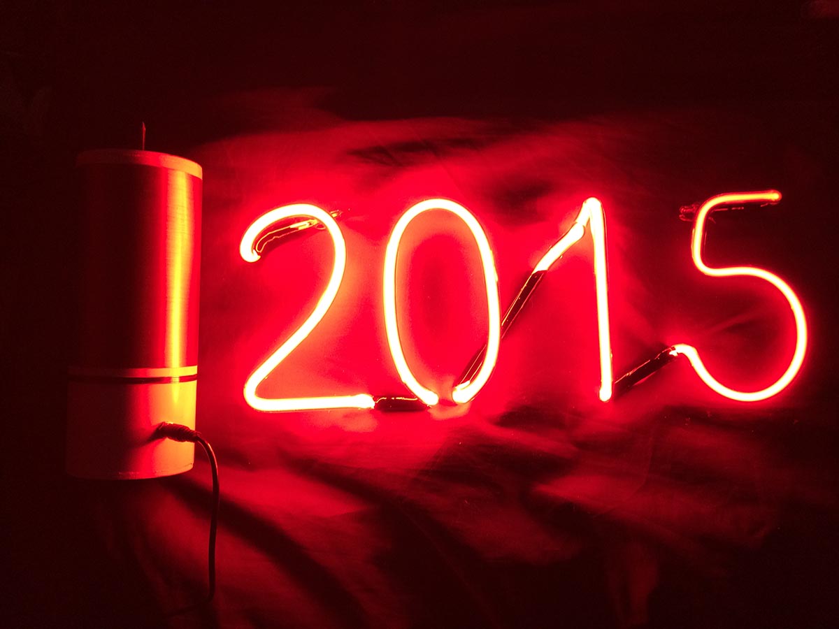 В ассортименте появилось ограниченное количество неоновых надписей 2015 для тесла-шоу под новый год, насадок для окраски разряда, и масса других интересных вещей, в частности, новых типов плазменных шаров и качера-жезла.