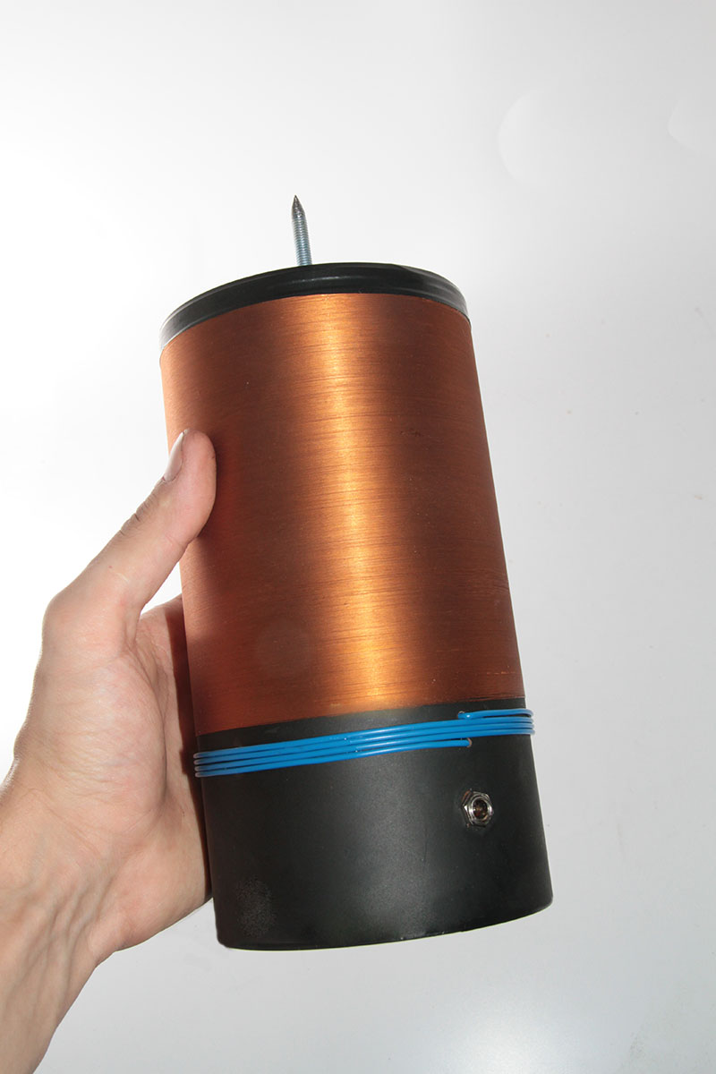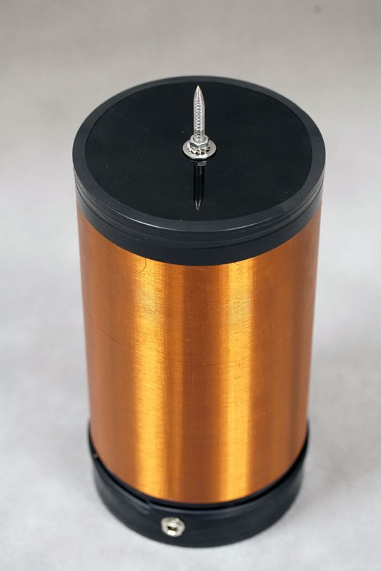 Катушка Тесла E1 — усовершенствованная версия популярной мини-катушки Тесла E0, более известной как «качер». От своего прототипа модель E1 отличается в лучшую сторону качеством сборки, увеличенным диаметром вторичной обмотки, создающим более мощное электромагнитное поле, увеличенной в три раза мощностью накачки контура (для этого нам пришлось даже поставить на её транзистор отдельный радиатор) и мощностью блока питания. Размер разряда увеличился до трёх сантиметров, плазменные шары светят почти так же ярко, как и от большой катушки Тесла, а неоновые палочки просто сходят с ума, искрясь всеми цветами радуги! Кроме того, модель Е1 может держать «включенными» до четырёх плазменных шаров одновременно.