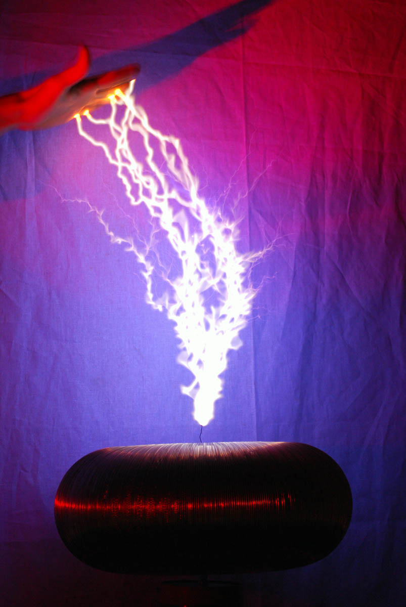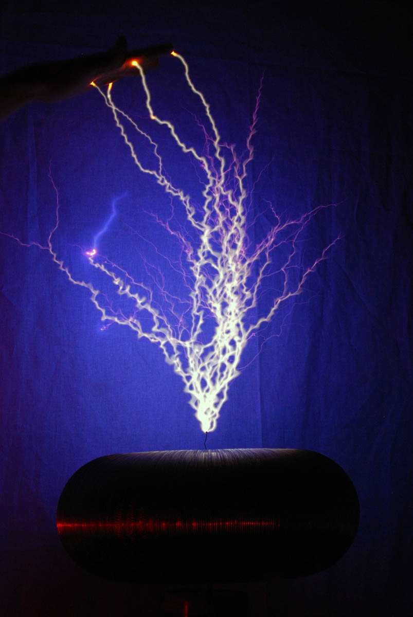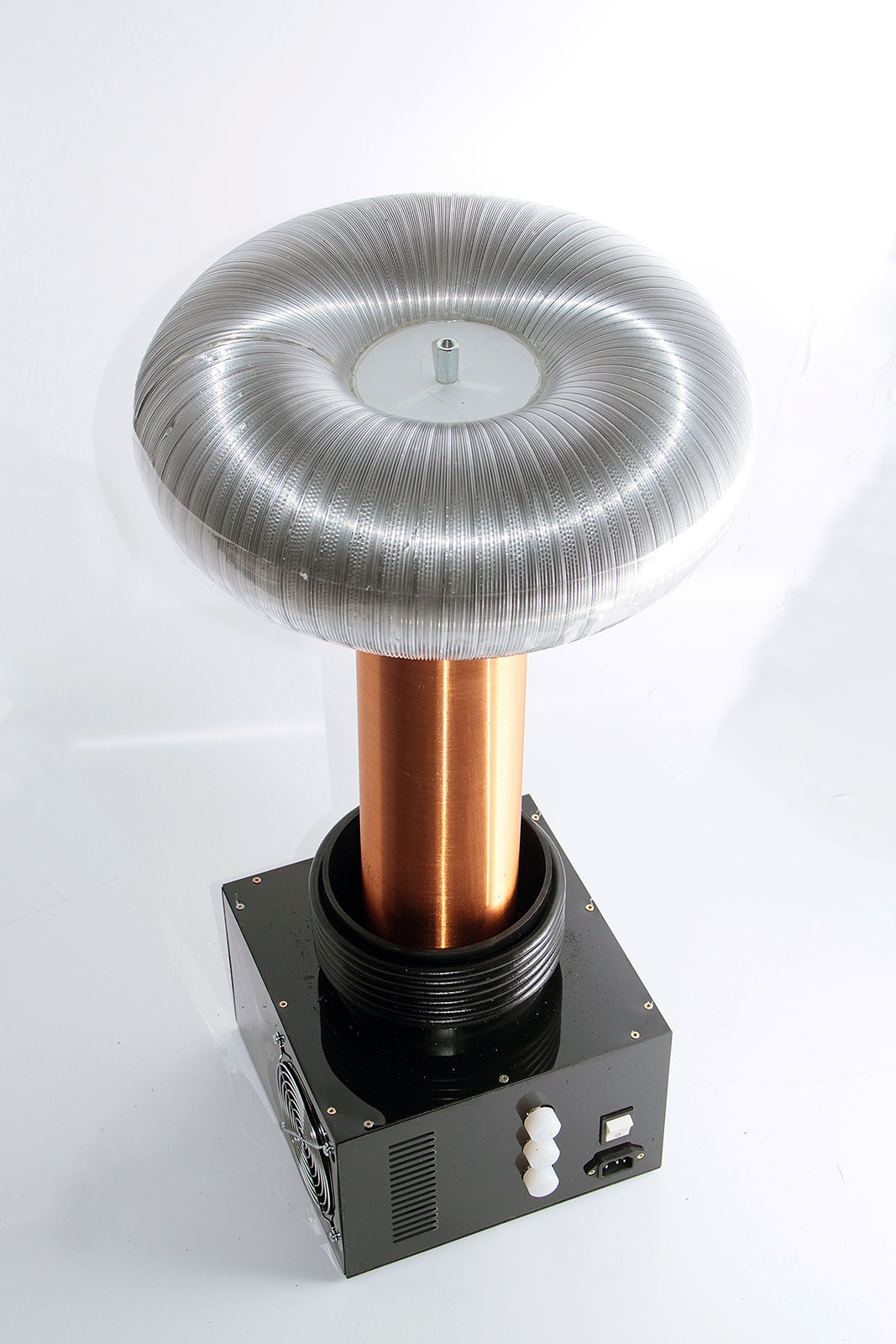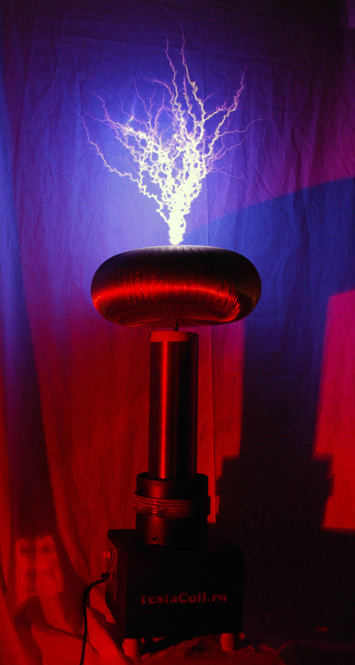 Модель FBR-I, флагман среди катушек Тесла среднего формата от Tesla Coil. Она создаёт настоящие молнии длиной более полуметра! Это уже не игрушка — эта большая и мощная модель трансформатора Тесла предназначена для использования опытным оператором. Имея мощность более киловатта, она может с лёгкостью зажечь лампу дневного света на расстоянии более двух метров, или в руке у стоящего рядом оператора. Раздельная регулировка ширины и частоты импульсов позволяет изменять вид разряда и характер производимых эффектов в широких пределах: от басовито ухающего плазменного жгута в ладонь шириной, до тонкого, непрерывно извивающегося и издающего пронзительный свист сгустка тончайших плазменных нитей. А дополнительная регулировка подстройки частоты позволяет использовать катушку для различных трюков, например, для «управления» разрядом при помощи поднесения рук или заземлённой штанги к тороиду.