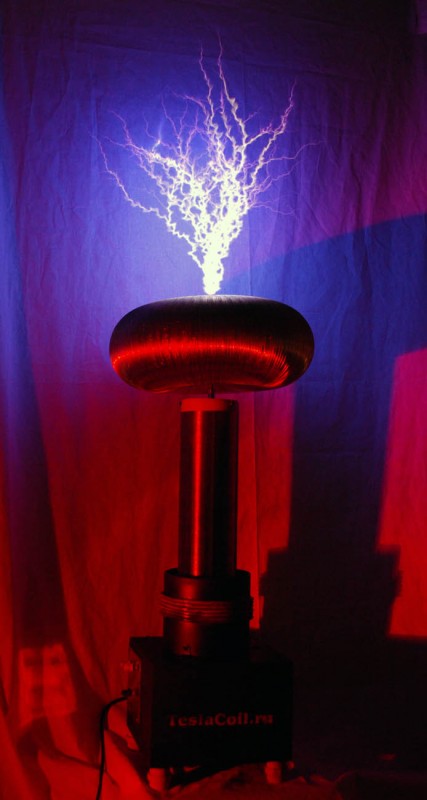 Внушительные размеры этой катушки Тесла делают возможным её использование в клубах, ресторанах и кафе, на некрупных концертах (можно настроить частоту появления разряда в такт музыке) и т. п. Для удобства транспортировки данная модель без труда разбирается, и так же легко собирается назад.