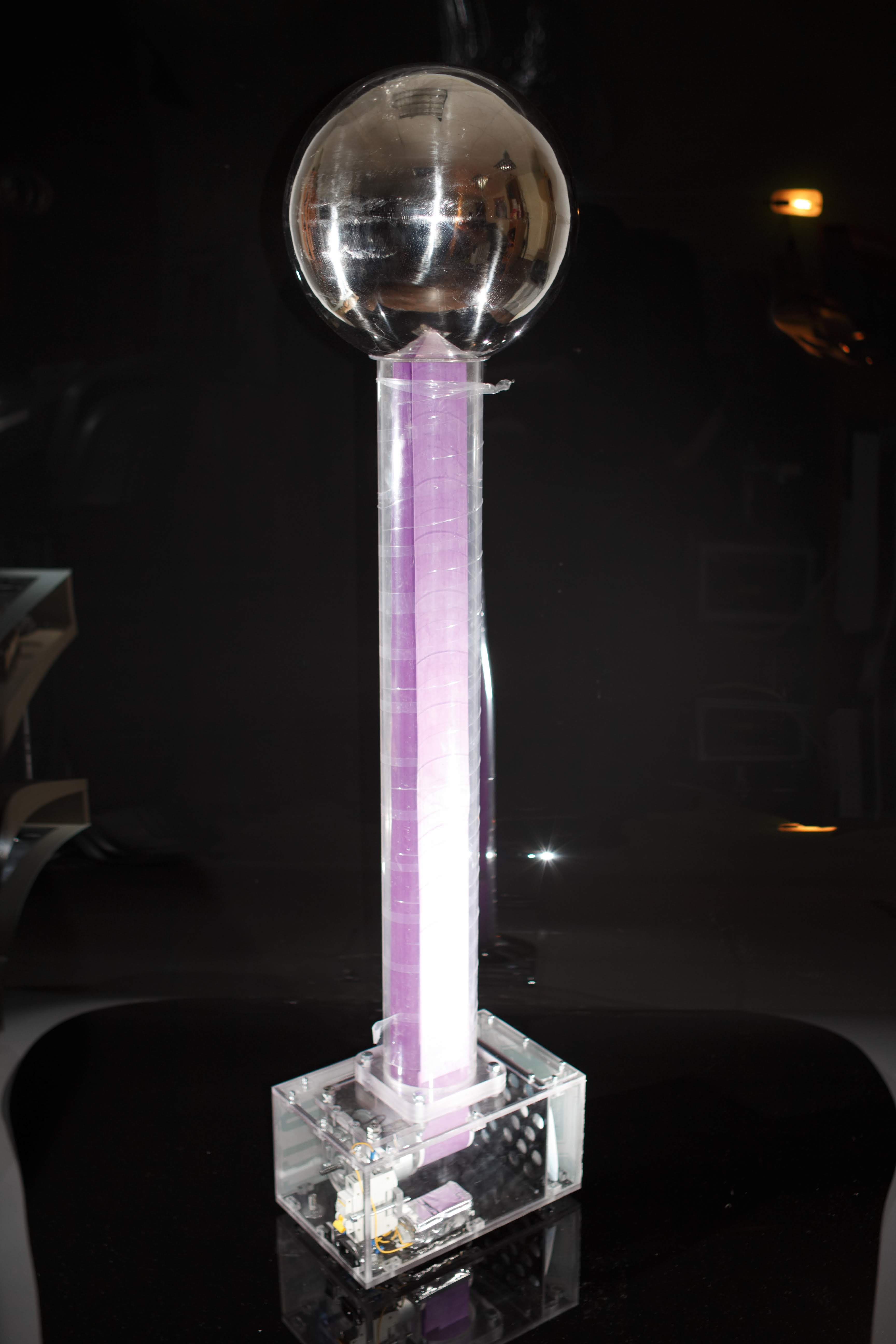 Статический электрический заряд, производимый генератором, позволяет проводить множество интересных опытов, помимо поднимания волос дыбом, от левитации предметов до демонстрации ионного ветра. Все эти эксперименты можно провести на генераторе Ван де Граафа разработки нашей компании. Чтобы купить генератор Ван де Граафа, добавьте его в корзину и оформите заказ. У нас есть генераторы на складе в наличии различных размеров, и мы можем изготовить под заказ генератор со сферой любого размера до 1500 мм в диаметре.