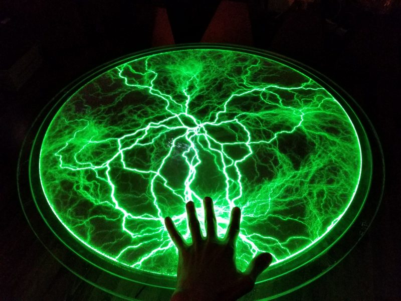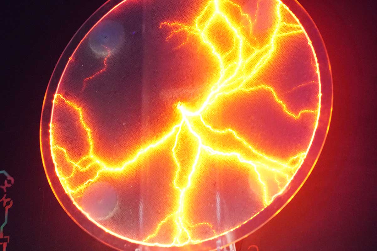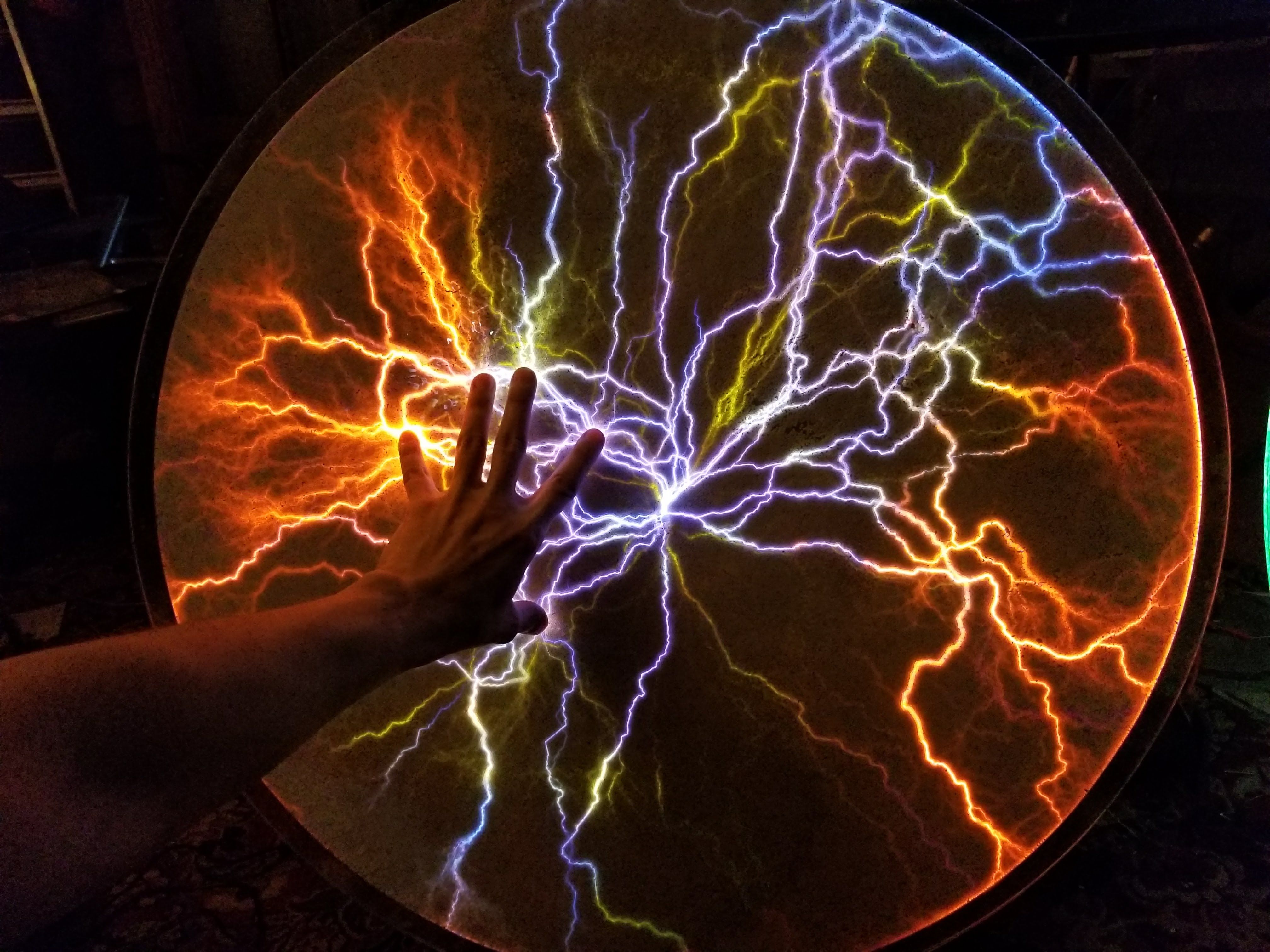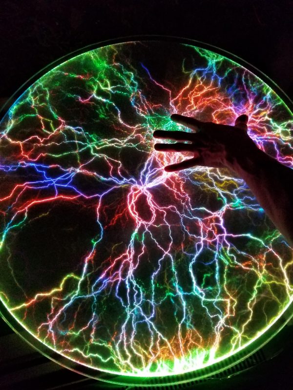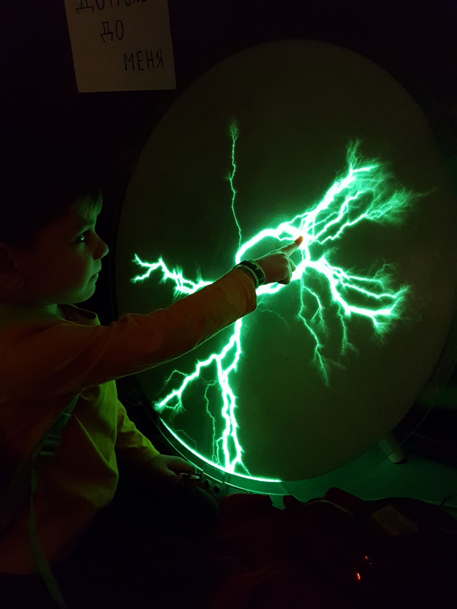 Молнии внутри послушно следуют за руками, которыми зрители проводят по поверхности.