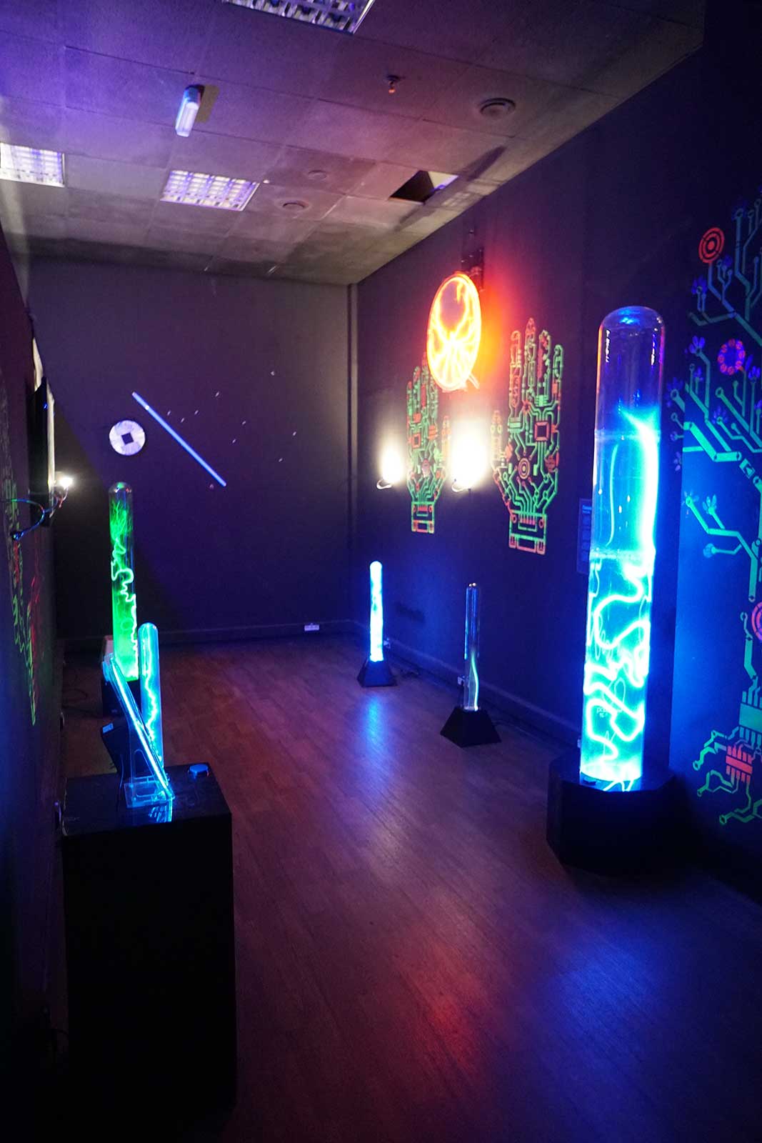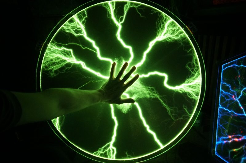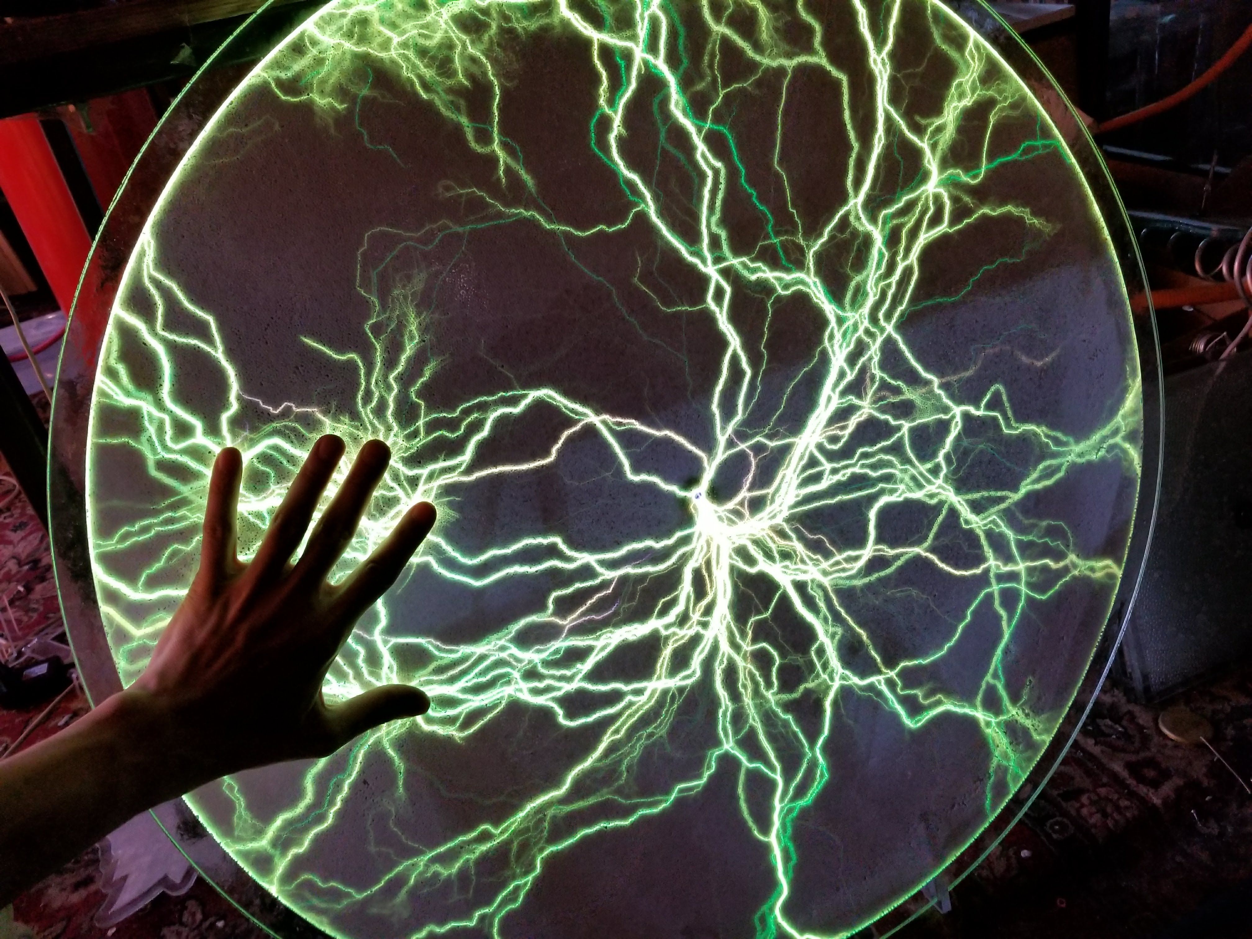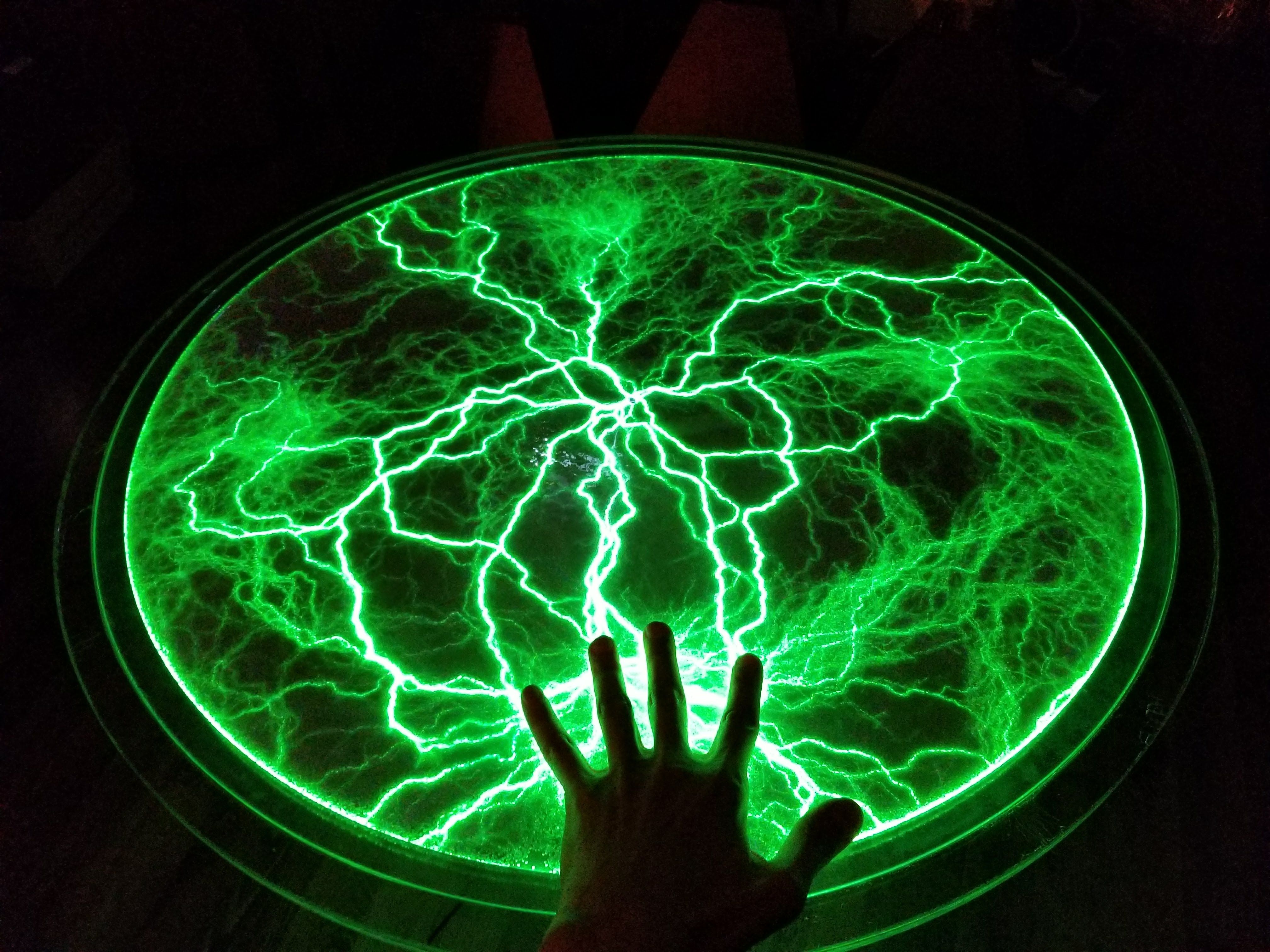 Молнии внутри послушно следуют за руками, которыми зрители проводят по поверхности.