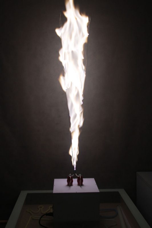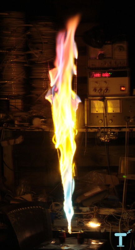 Если нанести на электроды соли металлов, окрашивающих плазму в различные цвета (например, соли натрия окрашивают в ярко-жёлтый, стронция и лития в красный, бора и бария — в зелёный), на этих участках дуга будет иметь соответствующий яркий цвет. Это можно с успехом использовать для демонстрации эффектов окраски плазмы ионами металла.