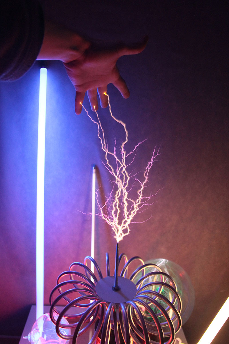 Данная модель катушки Тесла — младшая среди полноценных сетевых трансформаторов Тесла от Tesla Coil. Компактная и лёгкая, она способна генерировать разряды длиной до 25-30 сантиметров, позволяя раздельное управление шириной импульса и частотой их следования. Эта катушка Тесла, помимо одноэлектродного плазменного электрического разряда (аналога молнии), способна производить все те не имеющие аналогов спецэффекты, которыми так ценно это самое знаменитое изобретение Николы Тесла. С её помощью вы сможете зажигать без проводов лампы дневного света, энергосберегающие лампы и неоновые трубки на расстоянии до 1.5-2 метров, просто держа их в руках. На ней можно запустить ионный мотор; окрасить разряд поваренной солью в ярко-жёлтый цвет, продемонстрировать беспроводную передачу энергии и поймать молнию в руку.