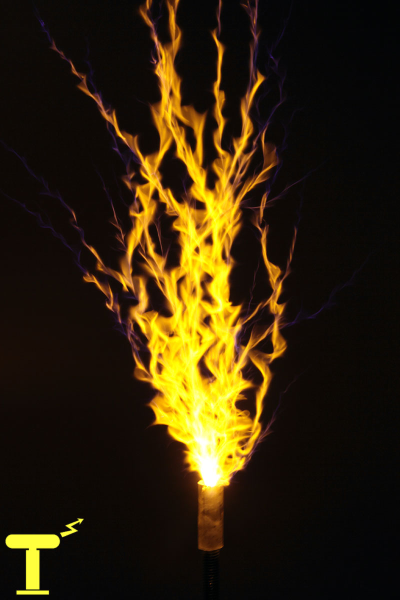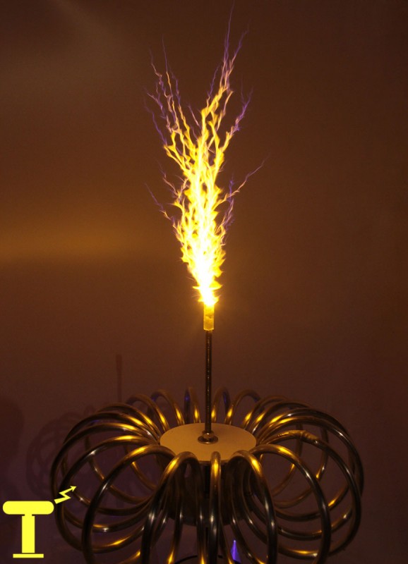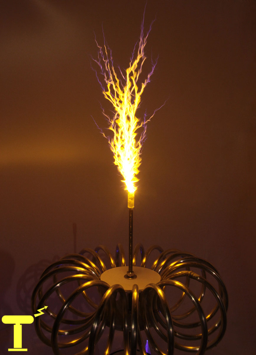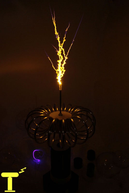 Насадка на терминал для окраски разряда в ярко-жёлтый цвет. Светимость и контрастность разряда многократно возрастает. Рассчитана на 5-10 минут непрерывного использования на максимальной мощности (примерно 5 типовых выступлений с Тесла шоу).