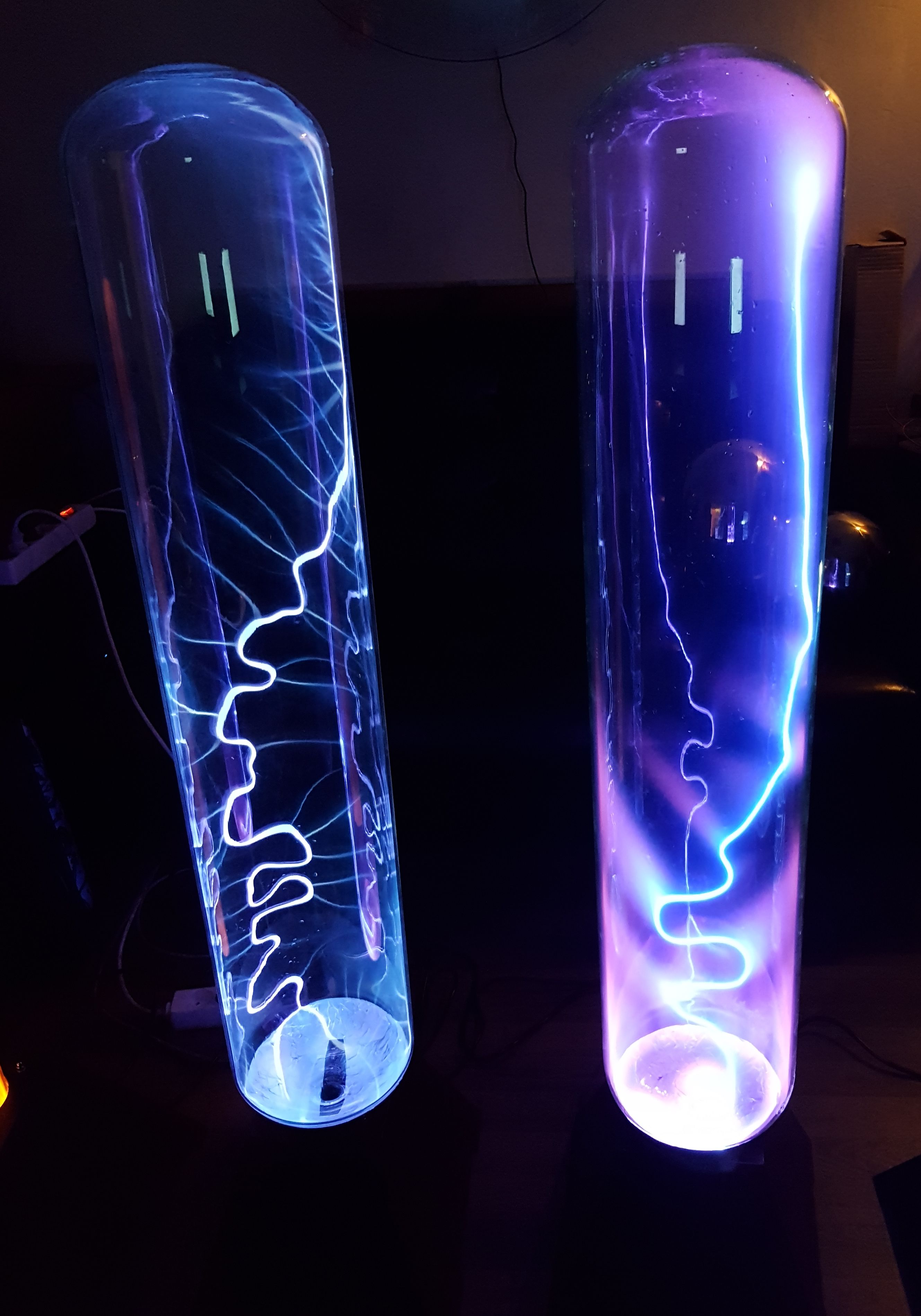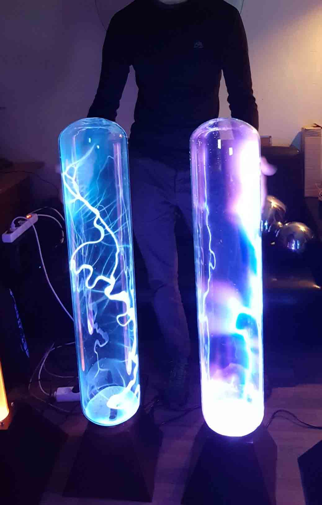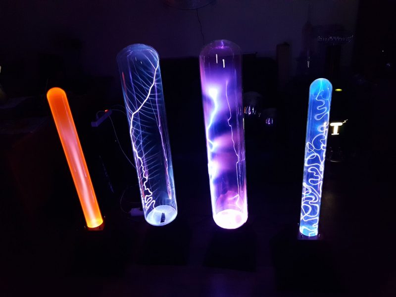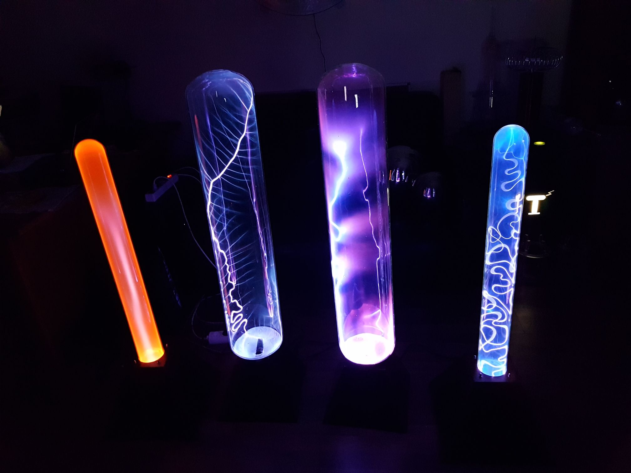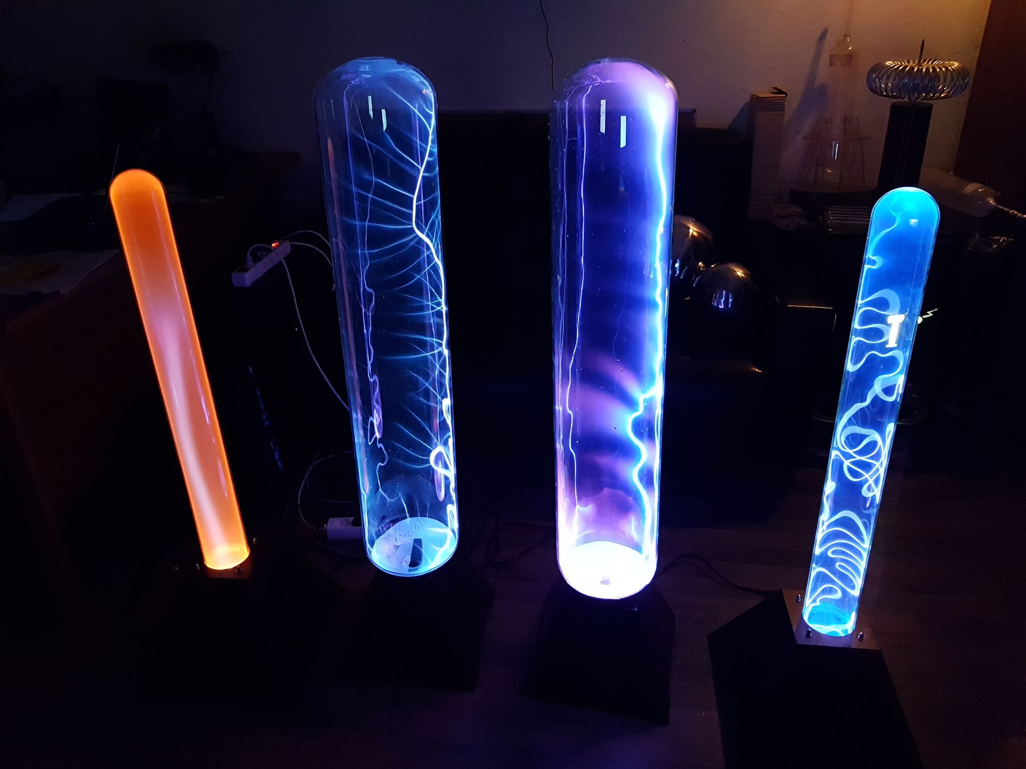 Все плазменные трубы этого раздела имеют собственные источники питания и деревянные корпуса. Также имеется регулятор мощности и выключатель.