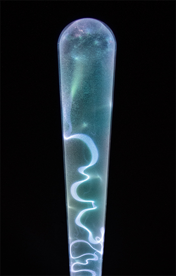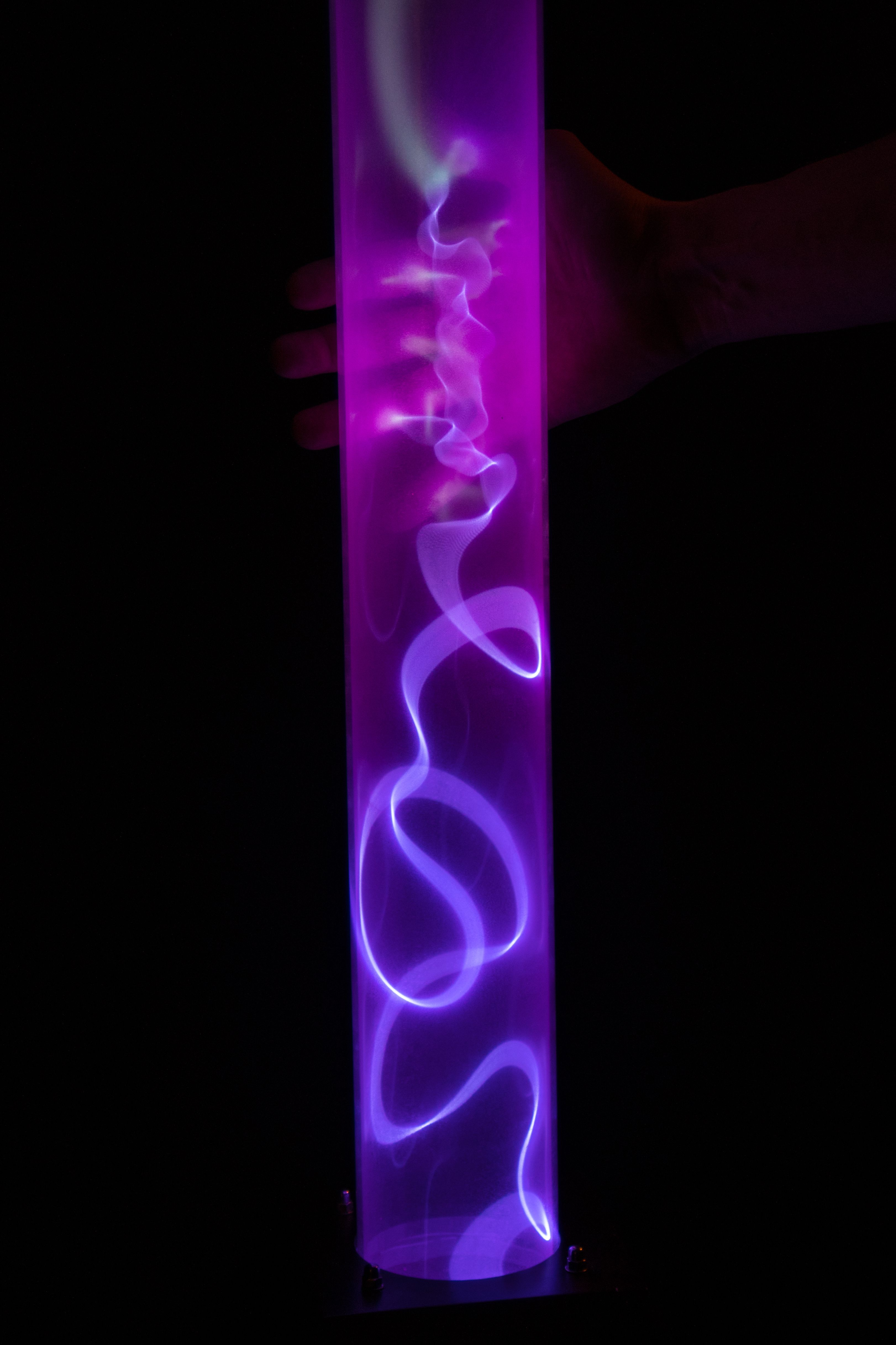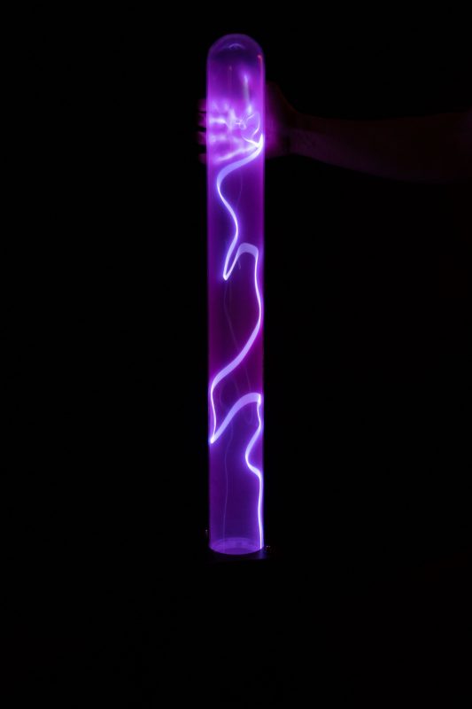Электрические разряды глубокого фиолетового цвета, всегда уникальные, всегда удивительные. Разряд «тактилен», изменяет поведение при прикосновении к нему, а Вам дарит легкое, еле ощутимое покалывание.