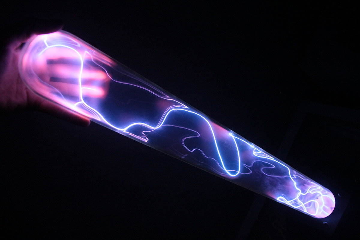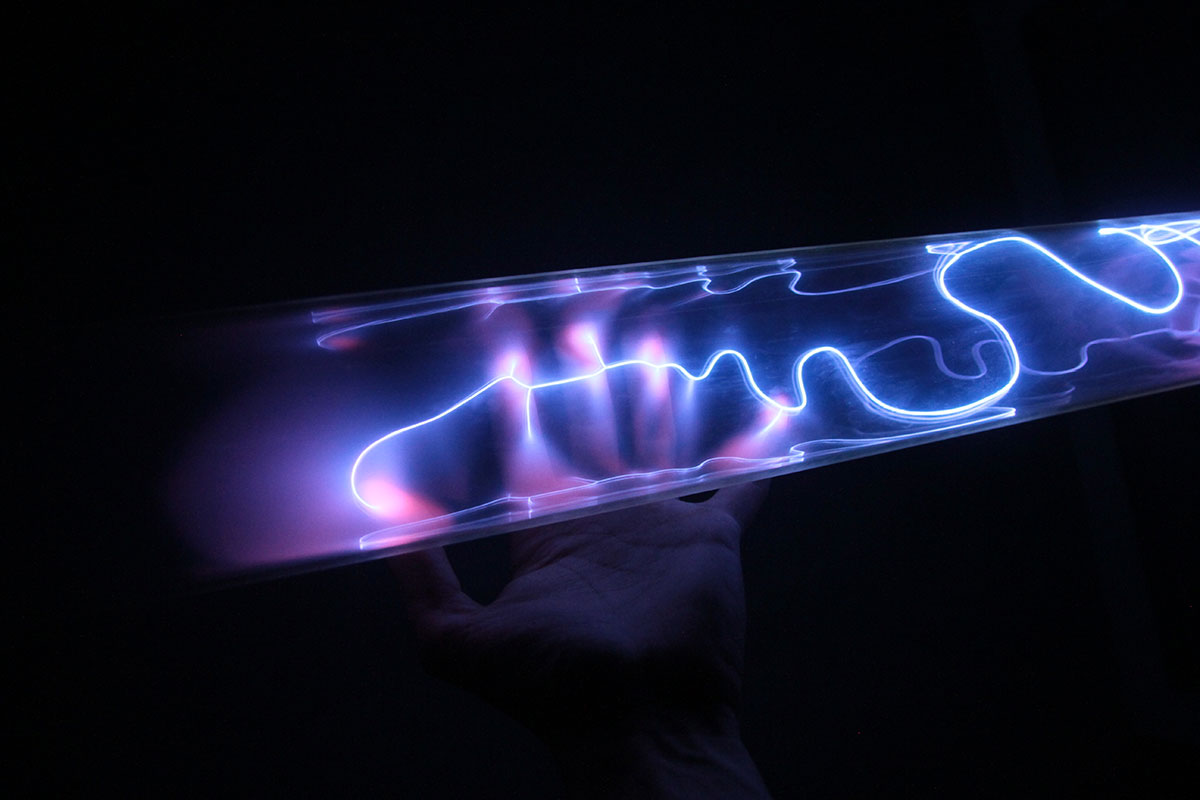 Красно-синие всполохи этой плазменный трубы создают непередаваемое ощущение необычности и сверхъестественности окружающей атмосферы. Холодные оттенки подойдут к минималистическим интерьерам или к решениям с использованием голубых и красных оттенков.