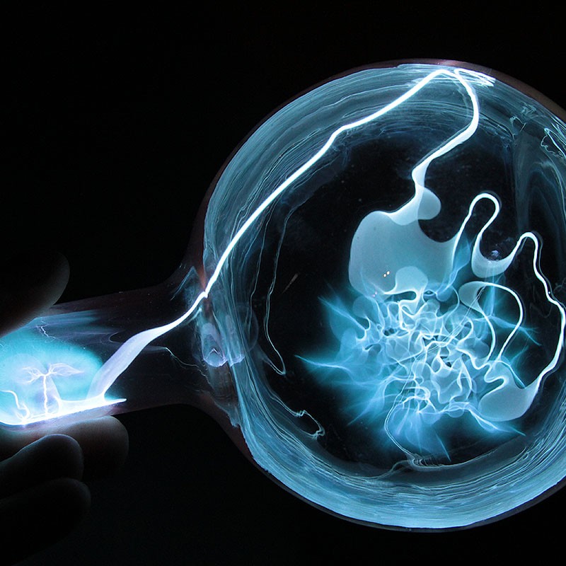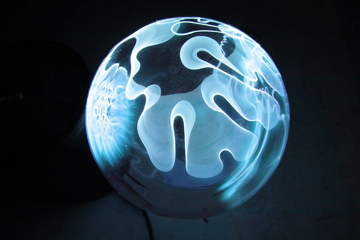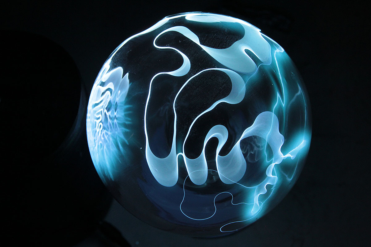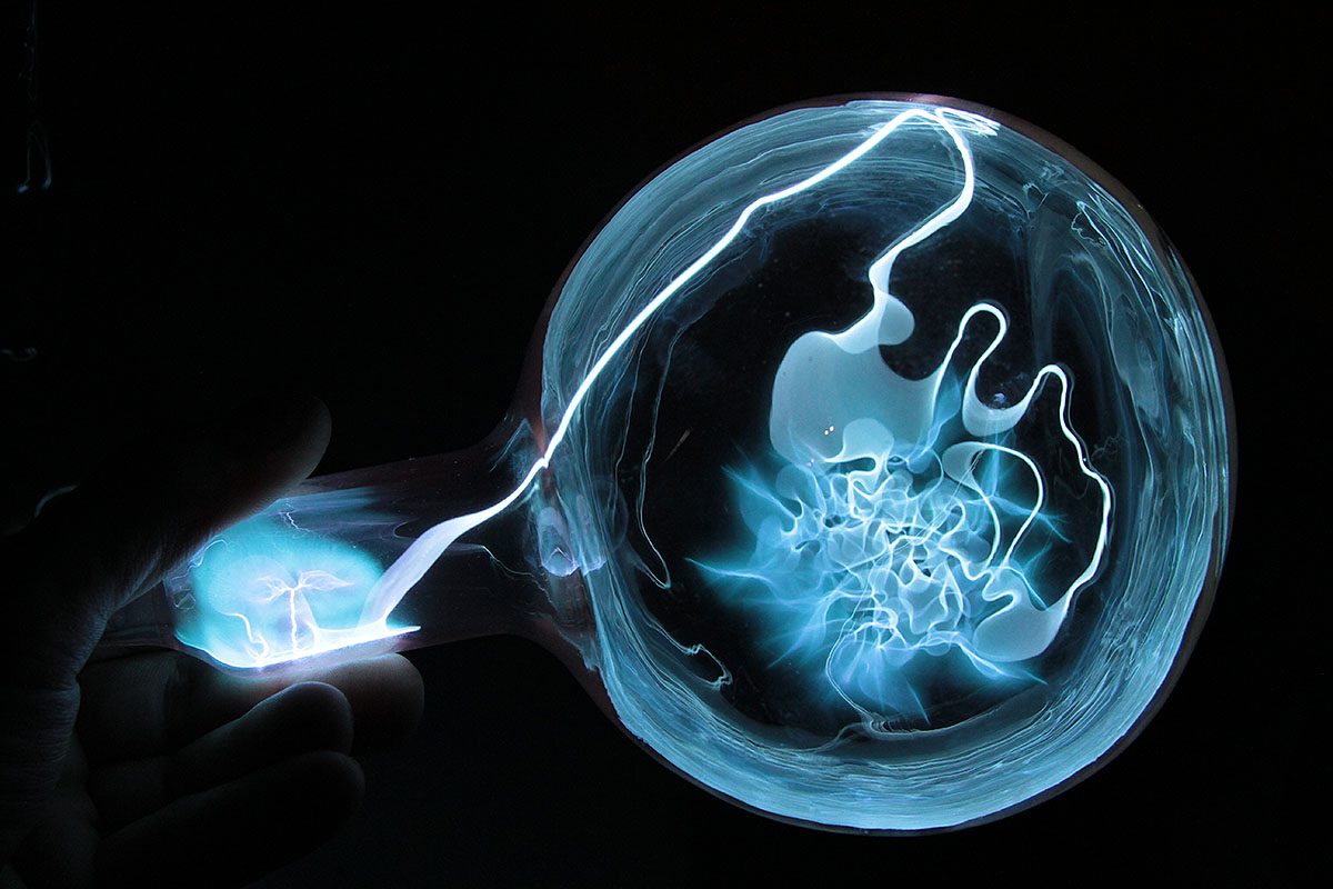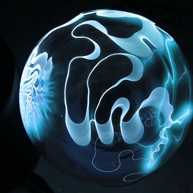 Плазменный шар оттенка яркой бирюзы, чистого и мощного. Нежный, но при этом интенсивный голубой цвет напоминает одновременно о предполуденном летнем небе, электрических разрядах и рифовых отмелях где-нибудь в тропическом море.
