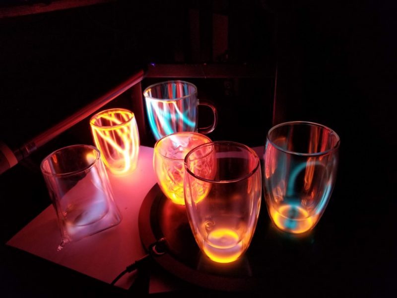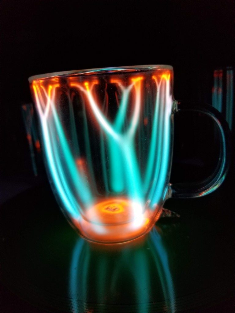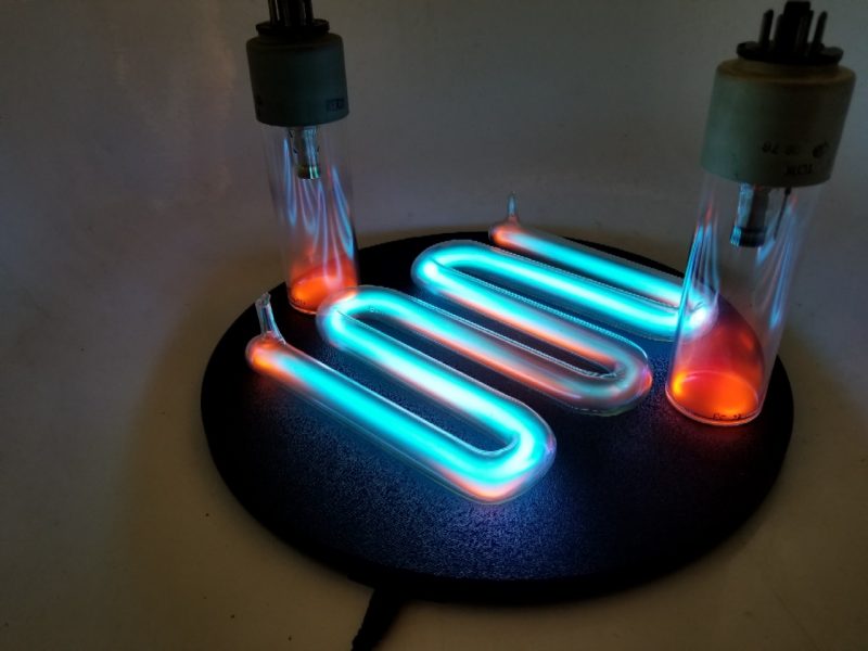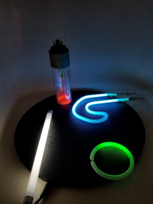 Подставка Тесла, известная как Электростолик — миниатюрная катушка Тесла, выполненная в виде плоского круглого цилиндра и предназначенная чтобы класть на неё неоновые предметы и наблюдать чудо.