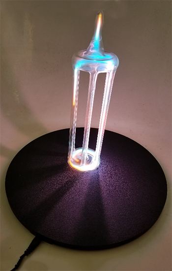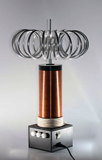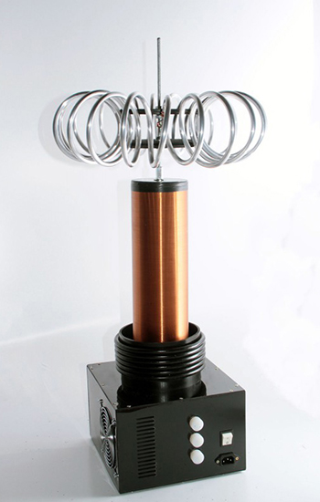 Небольшая катушка Тесла, выполненная в виде плоской подставки.
