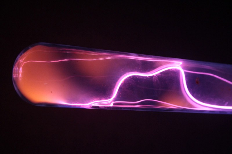 Плазменные колбы — стеклянные цилиндры, заполненные смесью благородных газов при пониженном давлении. В поле катушки Тесла или другого источника высокочастотного напряжения газ внутри них ионизируется так же, как и в плазменных шарах, создавая причудливые световые эффекты. Благодаря своему большому размеру, плазменные колбы являются чрезвычайно удачным выбором для среднеформатного Тесла-шоу и гарантируют успех и восторг зрителей.